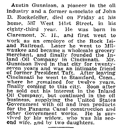 On April 2, 1915 Austin passed away. Adelaide passed away on June 29, 1916, also in New York.