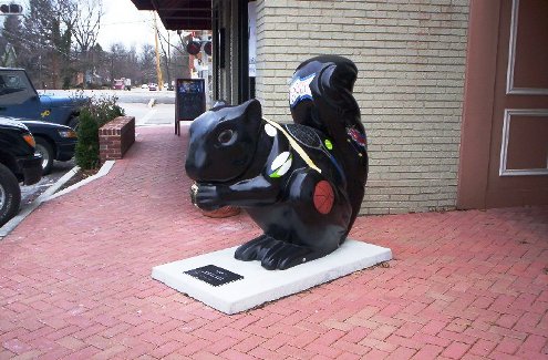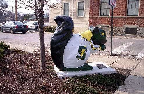 So, what's with the squirrels? Well, in the 1940s Thomas Carruthers III, a Glendale businessman, brought two pairs of black squirrels to the village from the resort town of Harbor Springs, Mich. Two weeks hadn't passed before someone shot one of the squirrels and its hide was prominently displayed on the wall of a local tavern. That left three black squirrels remaining, but they managed to populate Glendale's tree-rich environment, and now Glendale is one of the few places that can claim a large population of these furry little fellows. Over the years, Glendale has become well known for the black squirrels and, well it just seemed logical to celebrate the village's 150th birthday with hand painted, four-foot tall, fiberglass squirrels scattered merrily throughout our town.